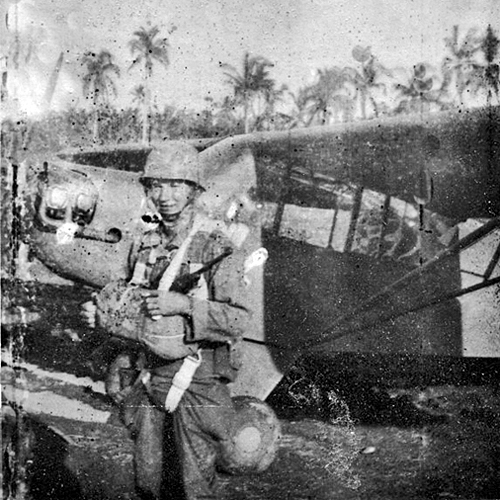 into Manarawat firebase from an L-4 near sunset on December 4,1944. The mission was to confirm that the area was sufficently secure for an